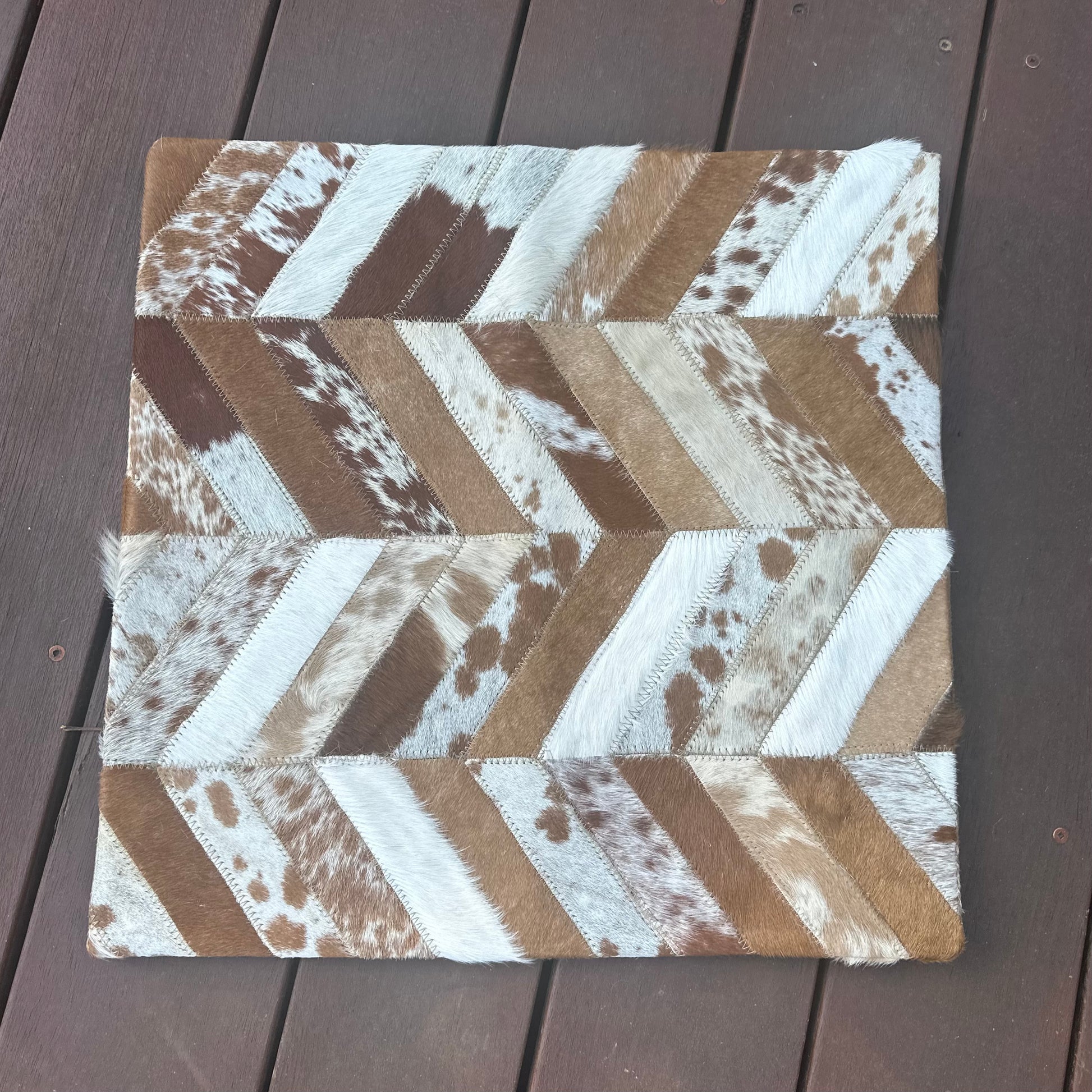 Cowhide Cushion Cover - Chevron Pattern - Tan and White Cowhide