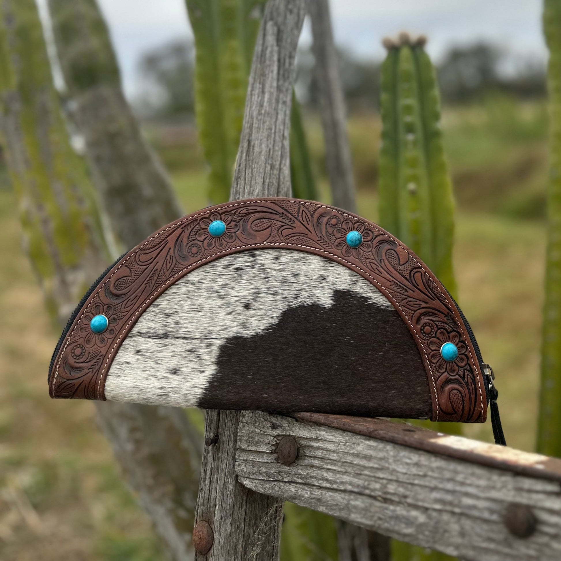 This wallet boasts a chic look with hand-tooling work on the upper section and hair-on leather at the bottom. It is a resilient built and compact size makes it ideal for everyday use.