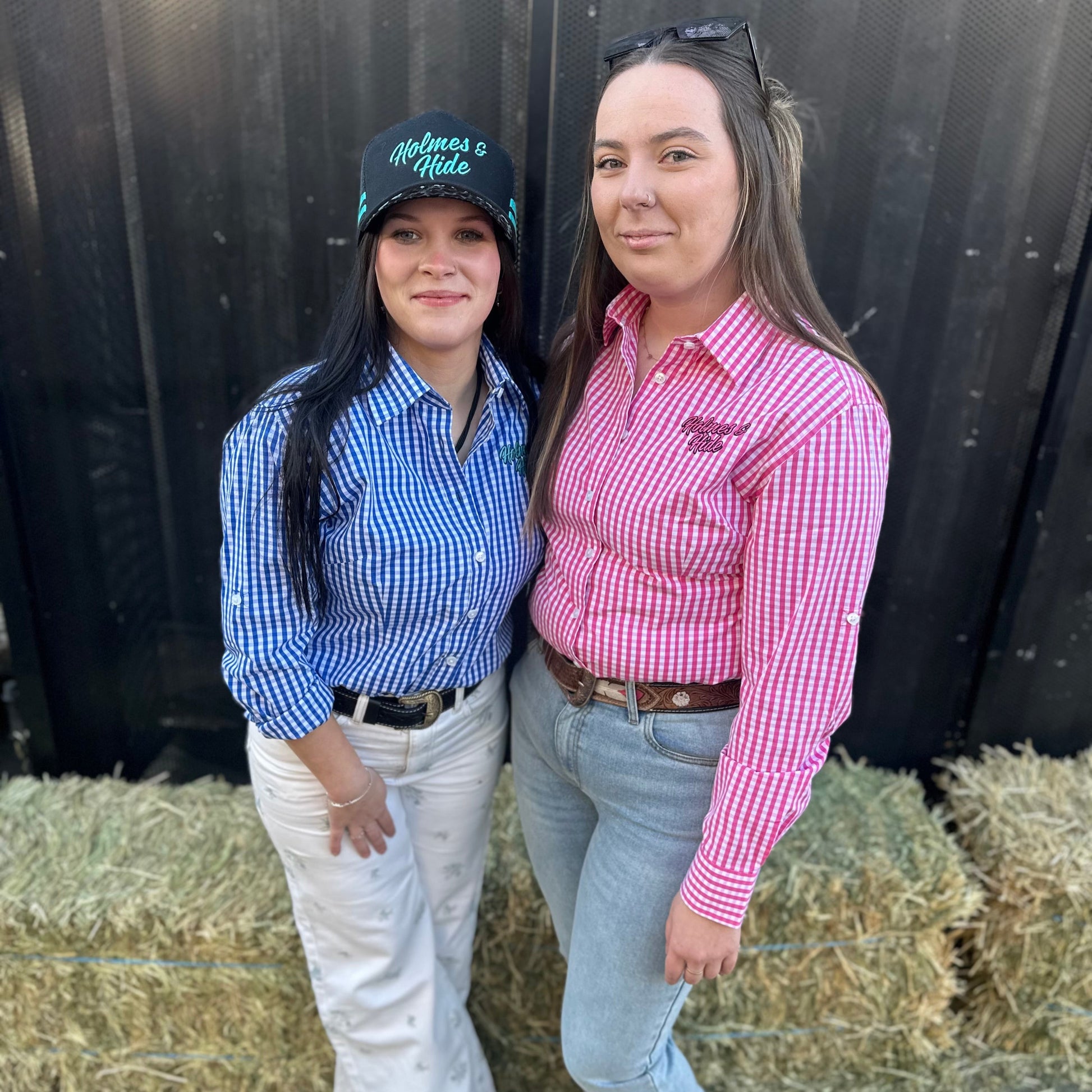 Pilbara Women's Classic Fit, Long Sleeve Shirt featuring Holmes & Hide embroidery.